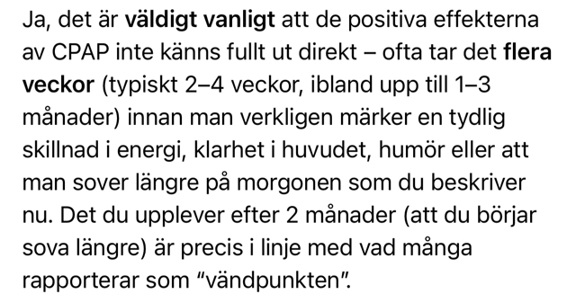 Någonting tycks i alla fall ha börjat hända, nu när jag har använt min CPAP-utrustning i två månader.